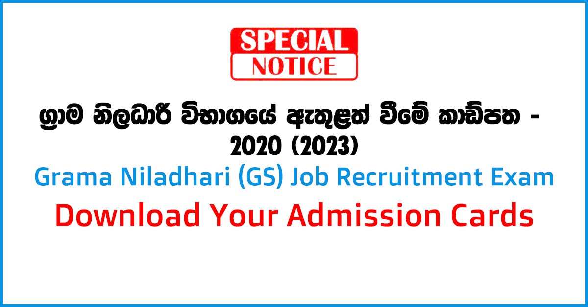 - COMPETITIVE EXAMINATION FOR RECRUITMENT TO GRADE III OF GRAMA NILADHARI – 2020 (2023) – Download Examination Admission Cards